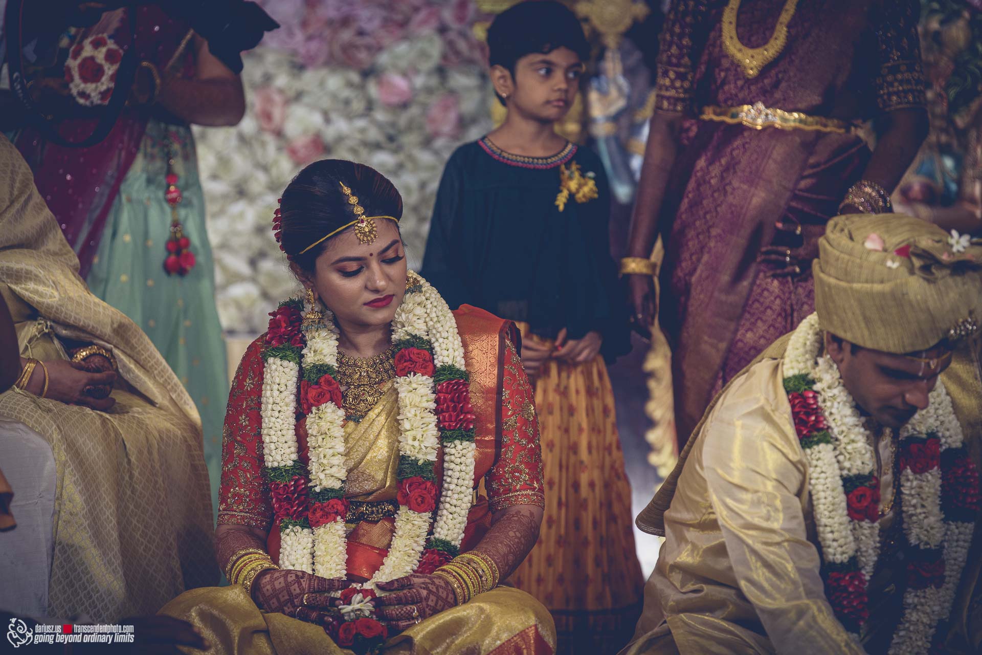 Najważniejszym elementem ceremonii jest złożenie siedmiu przyrzeczeń małżeńskich. Przyrzeczenia te, nazywane są saptapadi, stanowią fundament hinduskiego małżeństwa. Samo słowo oznacza siedem kroków, bo po zawiązaniu na szyi panny młodej mangalsutry (złoty łańcuch z trzema węzłami oznaczającymi obowiązki wobec męża, rodziców i potomstwa) para dokonuje siedmiu kroków wokół świętego ognia. Tym samym małżeństwo staje się faktem. Święty ogień, symbolizuje czystość i nowe życie. Młoda para obdarowuje się girlandami kwiatów, co oznacza przyjęcie siebie nawzajem. Tych kwiatowych girland może być czasem naprawdę mnóstwo, w większości jednak zależy to od zamożności rodzin młodych. Po głównej ceremonii następuje huczne wesele z muzyką i pysznym jedzeniem. Wesele nie zawsze wypełnione jest tańcami, wiele zależy tu od religijności i przywiązania rodzin do tradycji. To, co jest najważniejsze, moim zdaniem, to fakt, że taki tradycyjny ślub w południowych Indiach to nie tylko święto miłości dwojga ludzi, to przede wszystkim celebracja rodziny i kultury.