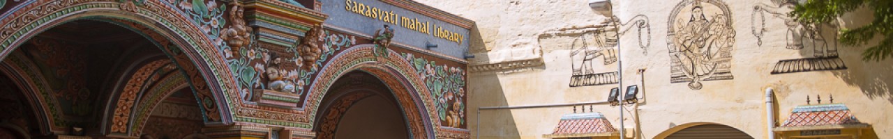 Do momentów szczególnych, z tego dnia podróży, zaliczam wizytę w Saraswathi Mahal Library czyli po prostu w bibliotece królewskiej usytuowanej w kompleksie budynków pałacowych, były tam również sklepy, kino, muzeum, pozostałości po salach królewskich i wysoka wieża dzwonu, niestety zamknięta tego dnia. Królewska Biblioteka Saraswathi jest jedną z najstarszych książnic Azji i posiada świetnie zachowane, niespotykane nigdzie indziej, manuskrypty spisane na palmowych liściach w najważniejszych językach Indii: Tamil, Telugu, Marathi, Hindi. Obecnie kolekcję wolumenów szacuję się na ponad 49.000 i zaledwie niewielki promil zbiorów prezentowany jest publicznie. Nie licząc wyjątkowych manuskryptów, najbardziej zainteresowały mnie i przypadły do gustu, duże formatem, opisujące jedną z kilku teorii ewolucji człowieka karty rysowane przez Charlesa Le Bruna, wielkiego malarza nazwanego przez Louisa XIV „największym artystą francuskim wszystkich czasów”.