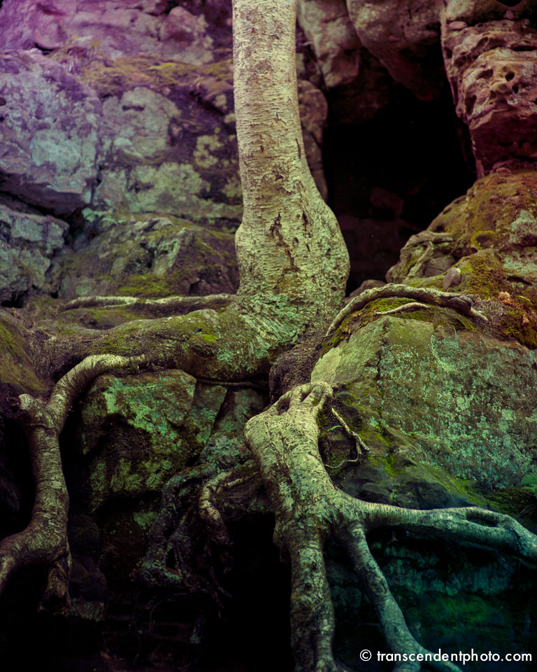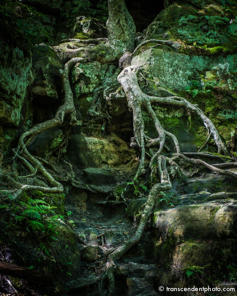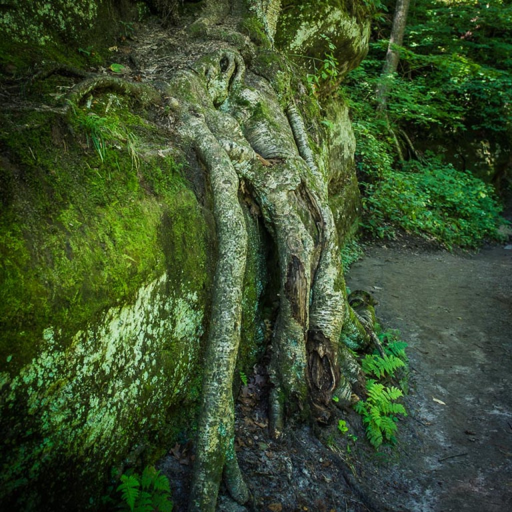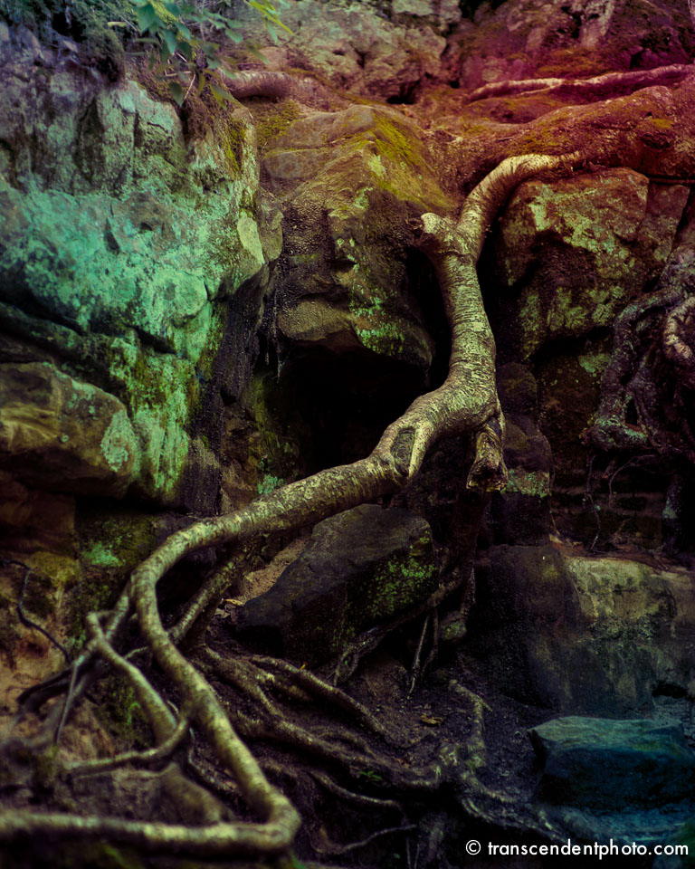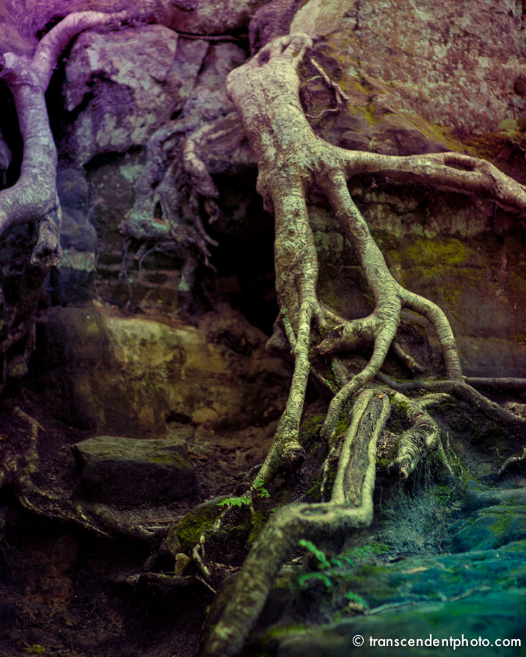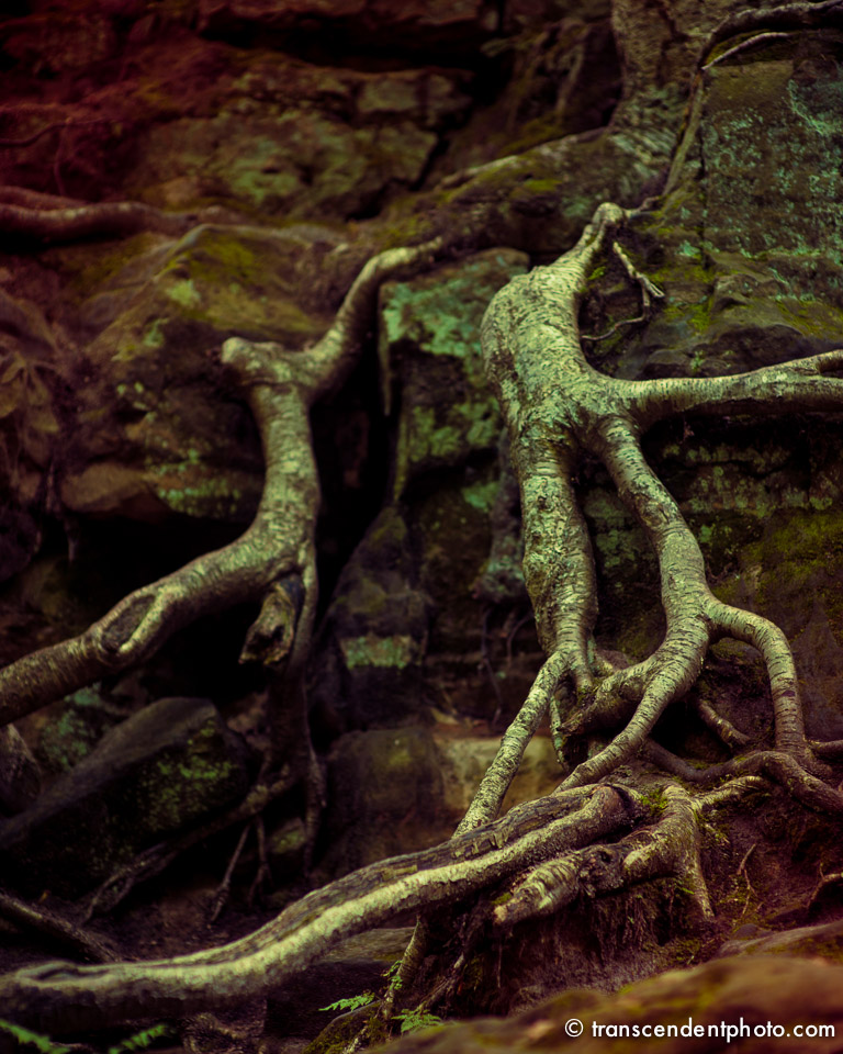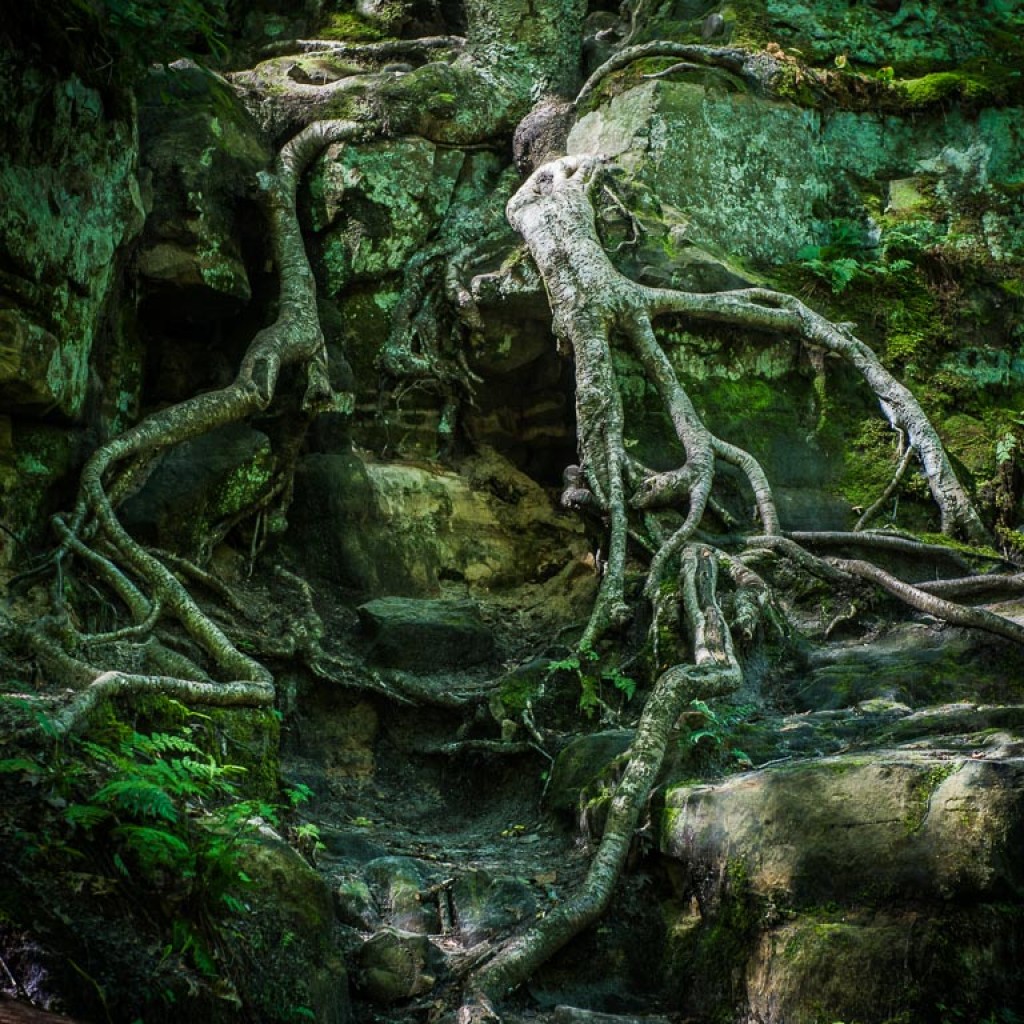 Korzenie wypływają ze skał i niczym strugi wody podążają dalej w bezbrzeżną przyszłość, zatrzymały się na moment. Nowe ziarno zostało rzucone, wstrzymane w ruchu, zamarły i czekają na kolejne posunięcie…