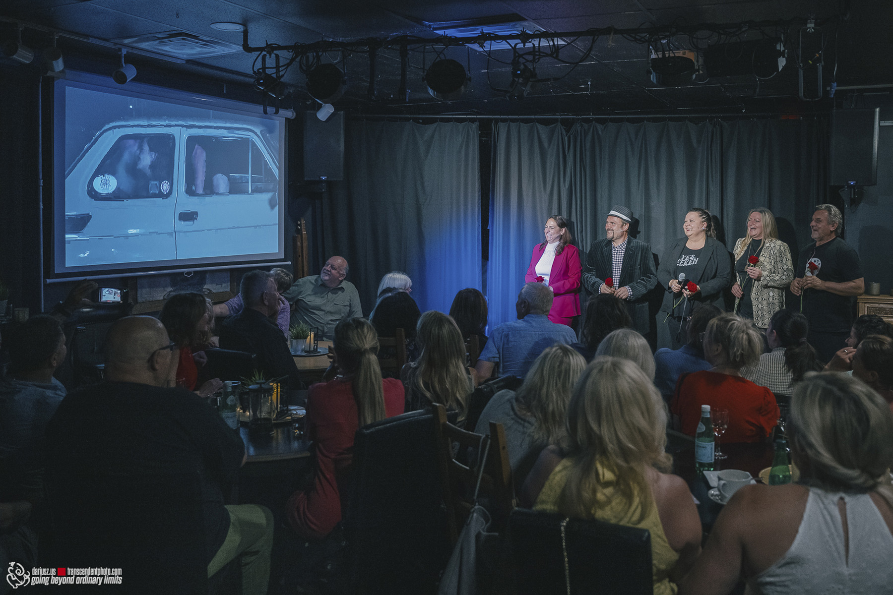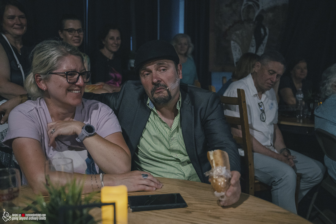Na czym właściwie polegała siła tego przedstawienia? Na słowie. Na rytmie. Na tym, co znajome i nasze. Fundamentem była błyskotliwa, dynamiczna rozmowa – dialog, który nie tylko prowadził akcję, lecz jestem tego pewien, odbijał się echem w głowach zebranych, bo brzmiał jak rozmowa zza polonijnego stołu. Wszystko było tu swojskie: język, akcent, emocje, znajomi w podobnych relacjach, nawet kultowy mały fiat i przestrzeń Art Gallery Kafe.
